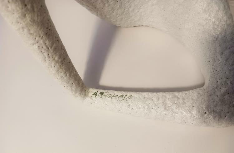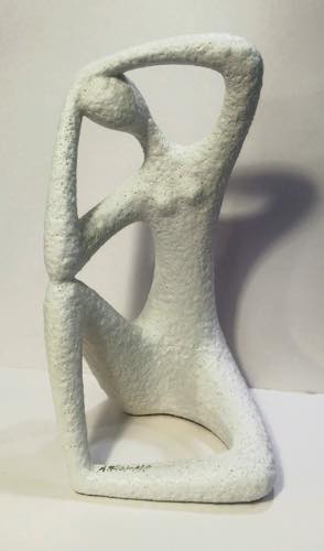 Amedeo Fiorese (Bassano del Grappa1939). Figura femminile seduta, fine anni '70. Scultura in ceramica invetriata. Firmata alla base A. Fiorese. Acquistata dall'attuale proprietario direttamente nell'atelier dell'artista. Cm. 40x20x20.