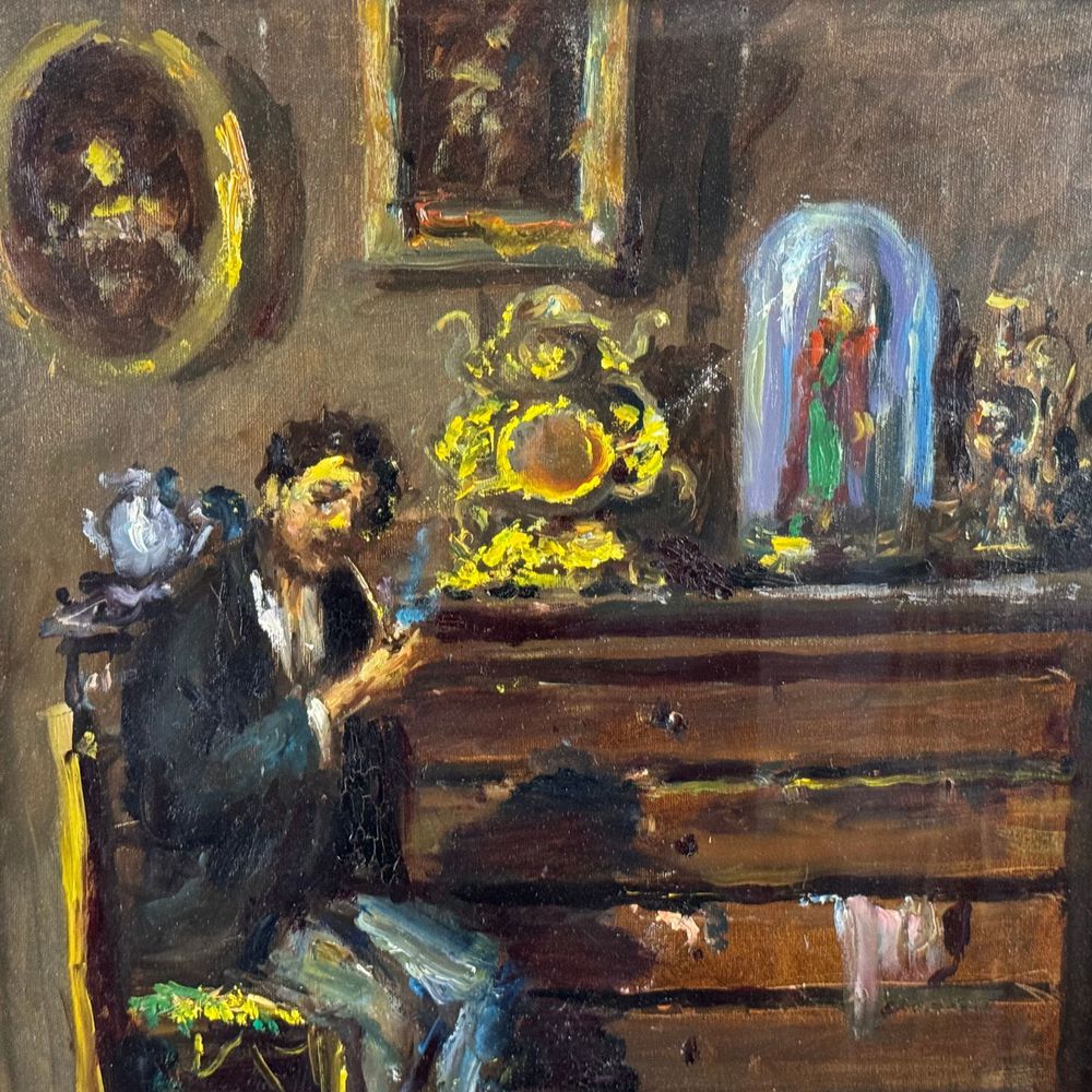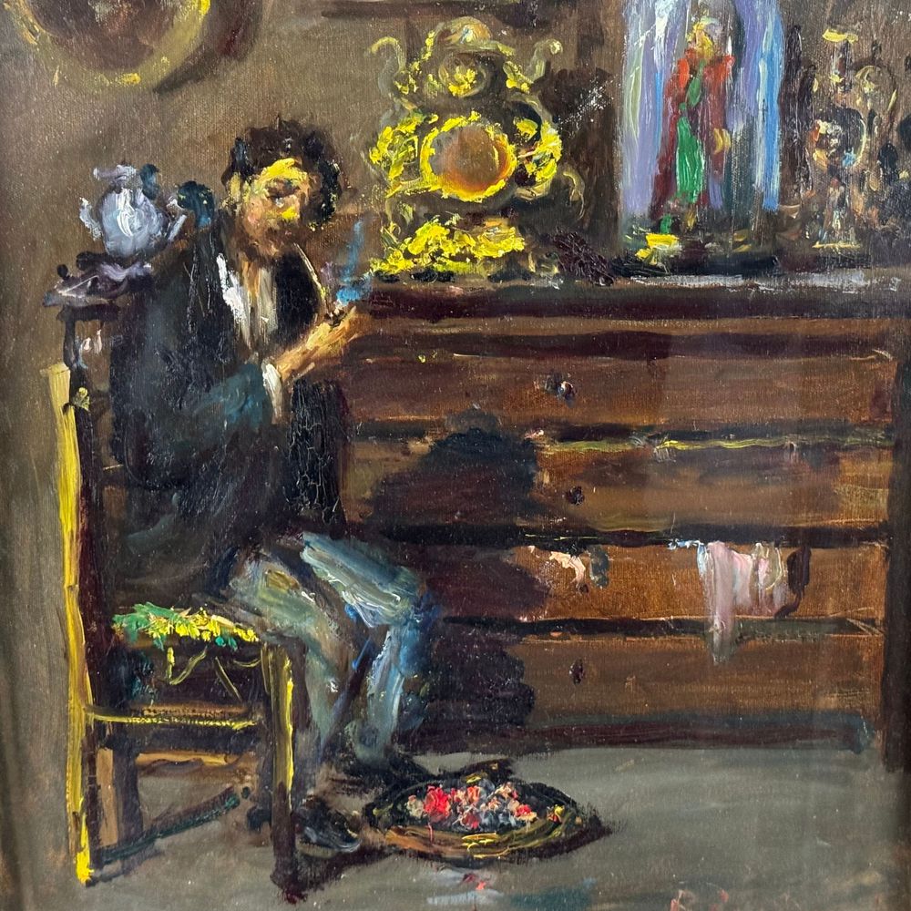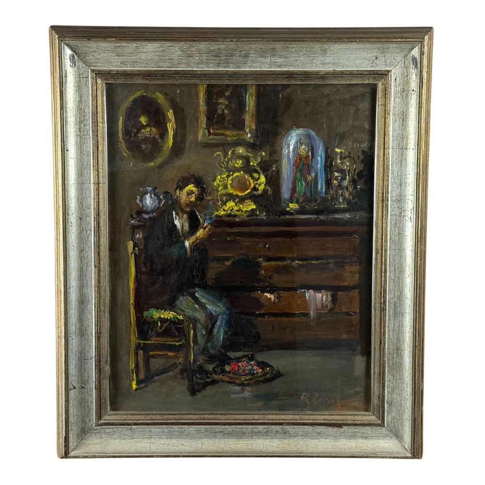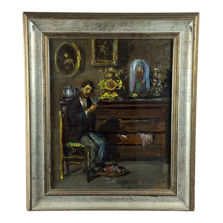 Dipinto olio su tela, periodo XX secolo scuola Italiana, raffigurante Vecchio in interno. Dimensioni interno cornice: 40x50 cm. Dimensioni compreso cornice: 56x65 cm. Reca firma in basso a destra da Roberto Carignani. Opera in buone condizioni.
