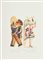 Borghese Franz e Romano Daniela DUELLO, 2001 Litografia a quattro mani su carta, 35x25, es. P.A. Firme e timbri degli artisti, dedica a persone, timbro a secco "Il tetto, edizione d'Arte", in basso al centro.