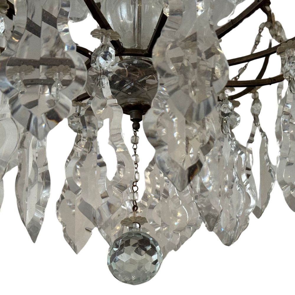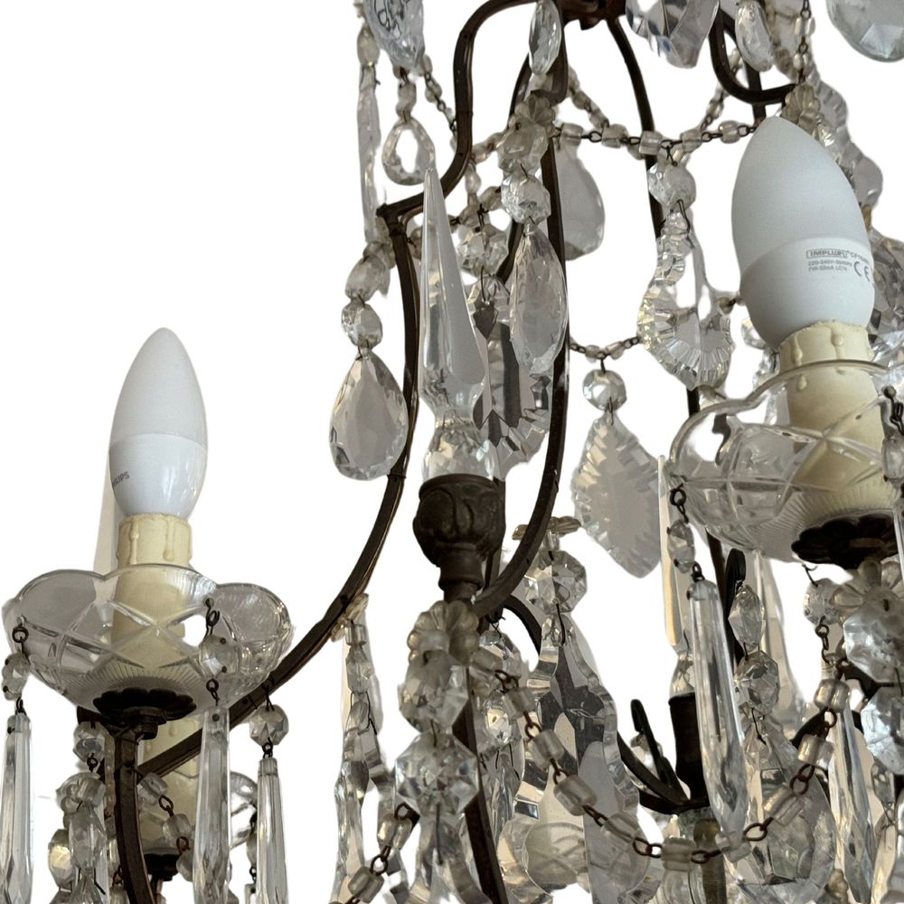 Lampadario in ottone e vetro di murano. Dimensioni: 110x60 cm. 6 punti luce, 12 braccia. Piccoli segni di vissuto e lievi mancanze come da foto allegate.