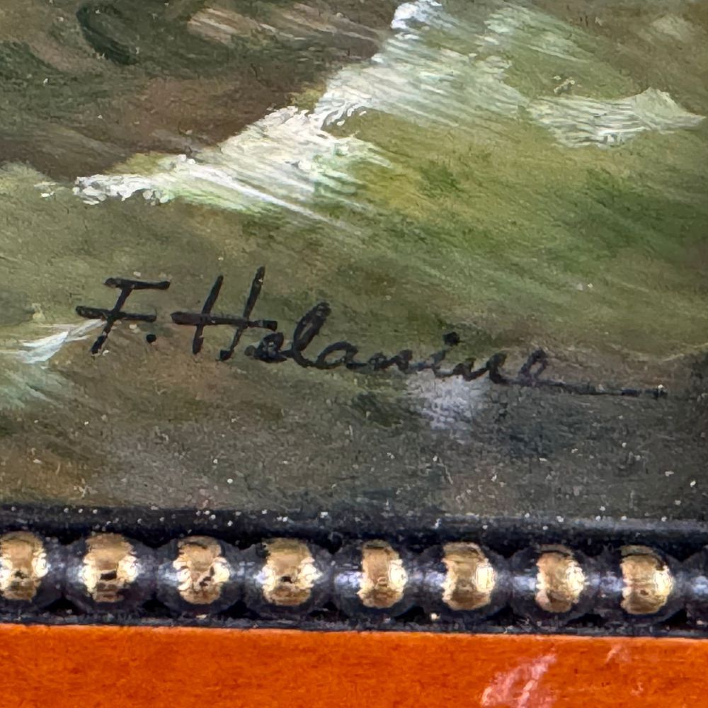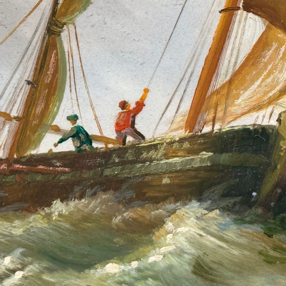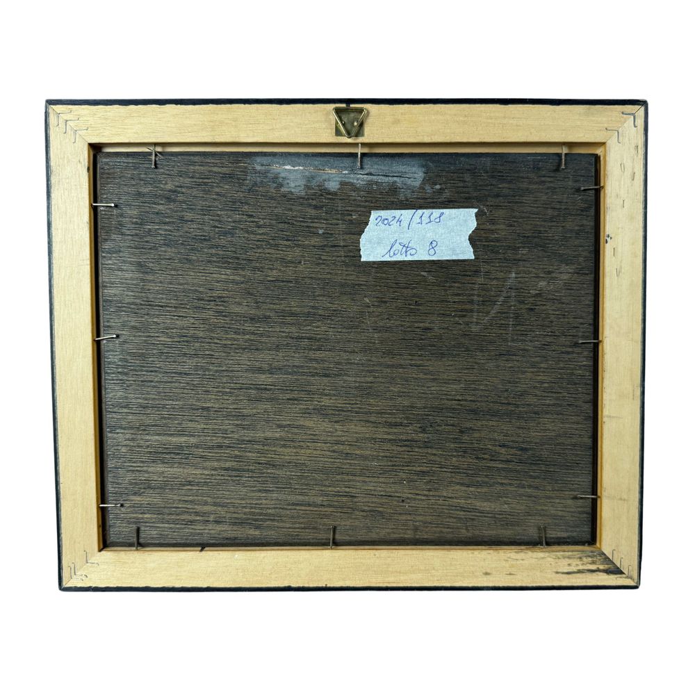 Dipinto olio su tavola, periodo XX secolo scuola Italiana, raffigurante Velieri. Dimensioni interno cornice: 25x20 cm. Dimensioni compreso cornice: 30x25 cm. Reca firma in basso a destra da artista non identificato. Opera in buone condizioni.