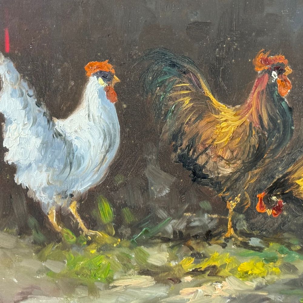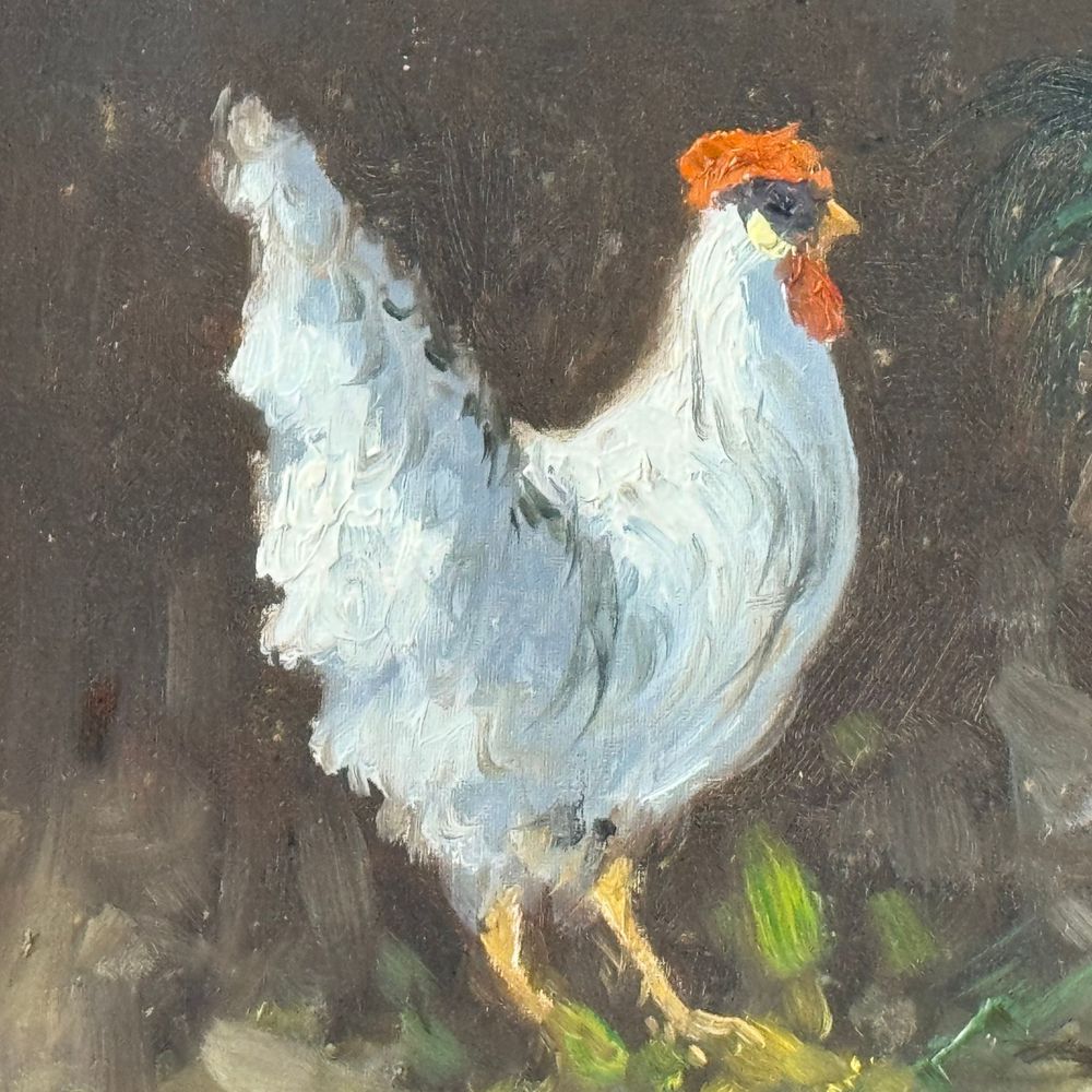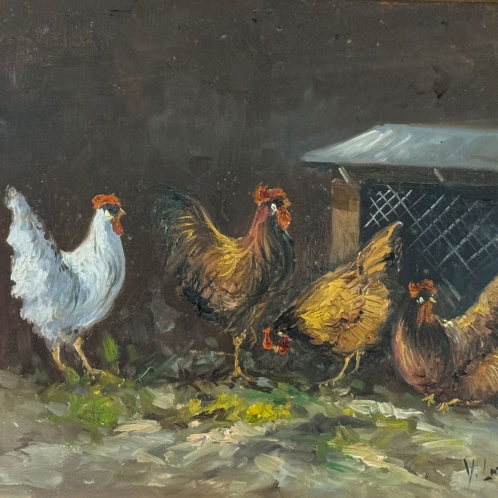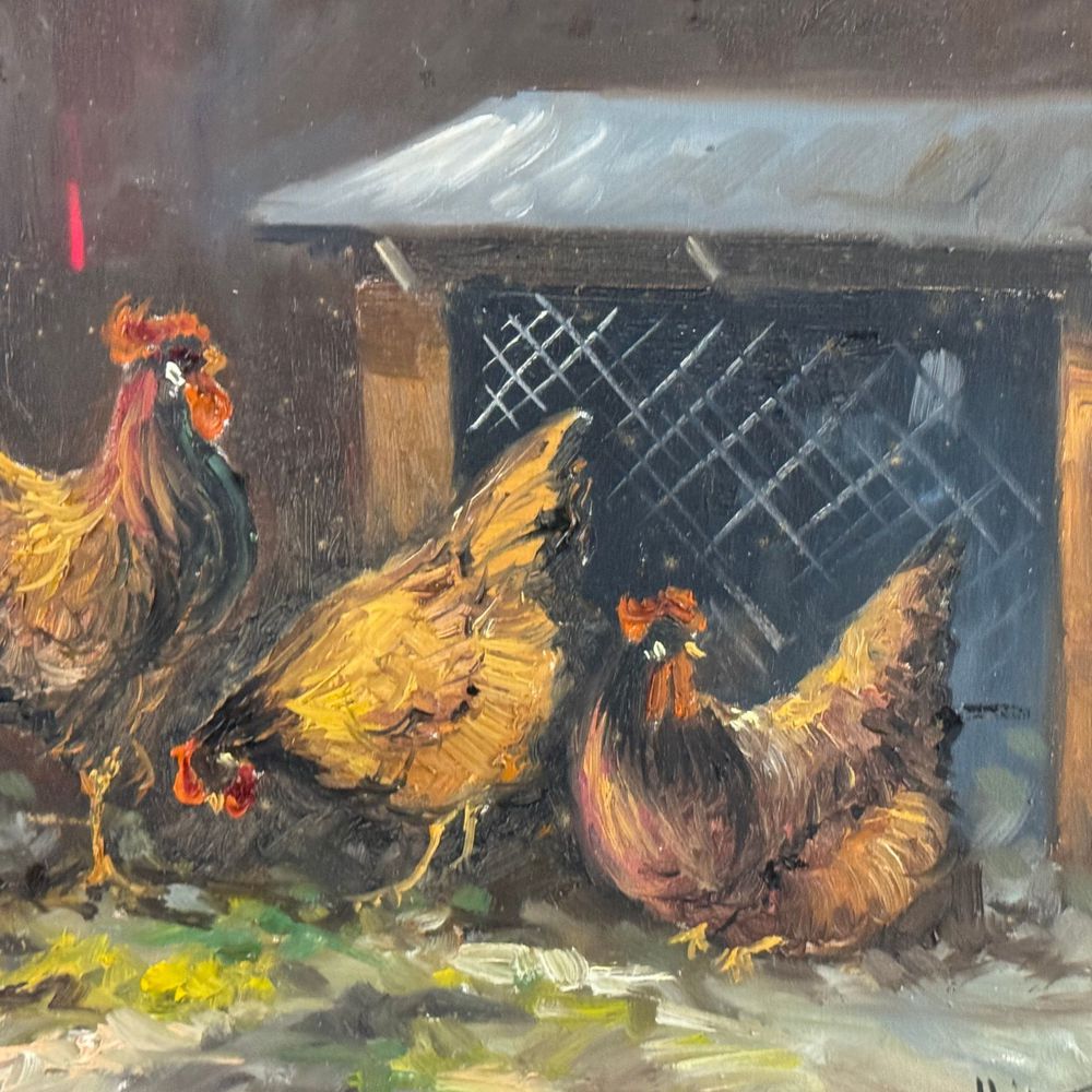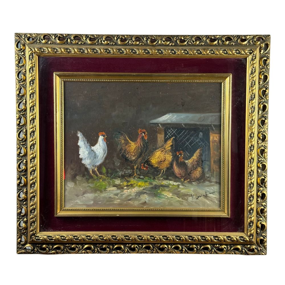 Dipinto olio su tela, periodo XX secolo scuola italiana, raffigurante Galli. Dimensioni interno cornice: 50x40 cm. Dimensioni interno cornice: 79x69 cm. Reca firma in basso destra da Vincenzo Laricchia (1940 - 2017). Opera in buone condizioni.