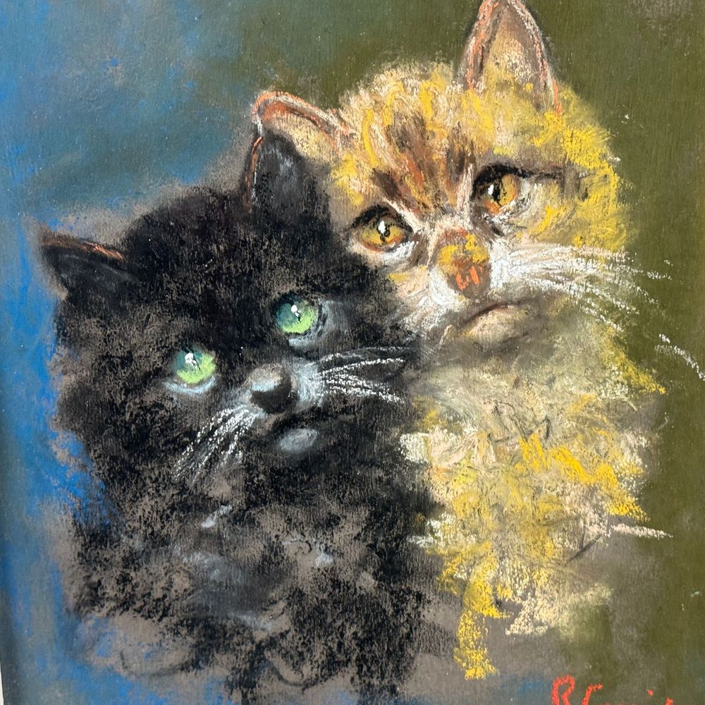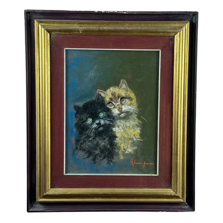 Dipinto tecnica mista su tavola, periodo XX secolo scuola Italiana, raffigurante Due gattini. Dimensioni interno cornice: 40x30 cm. Dimensioni compreso cornice: 48x57 cm. Reca firma in basso a destra da Roberto Carignani. Opera in buone condizioni.