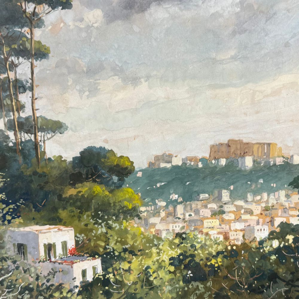 Dipinto acquerello su carta, periodo XIX/XX secolo scuola Italiana, raffigurante Capodimonte (Napoli). Dimensioni interno cornice: 30x40 cm. Dimensioni compreso cornice: 43x37 cm. Reca firma in basso a destra da R. Pittore. Opera in buone condizioni.
