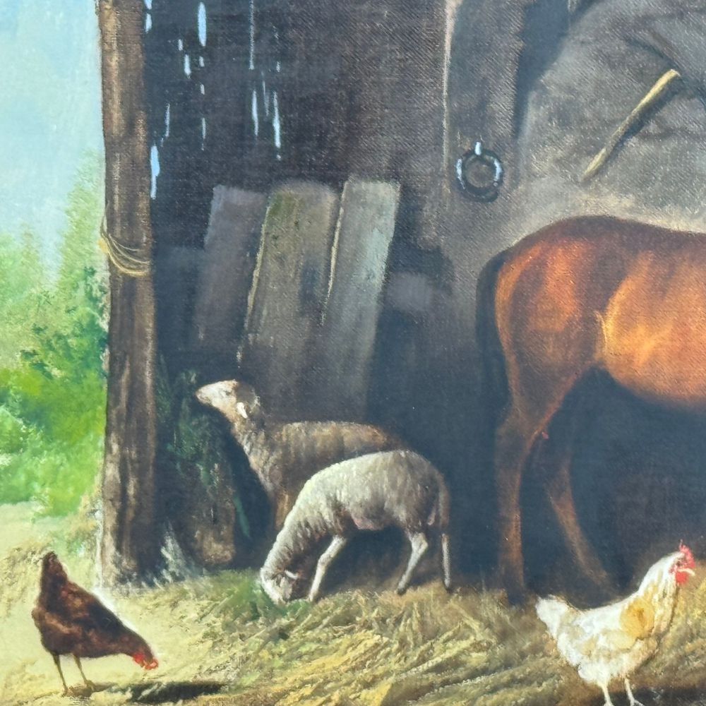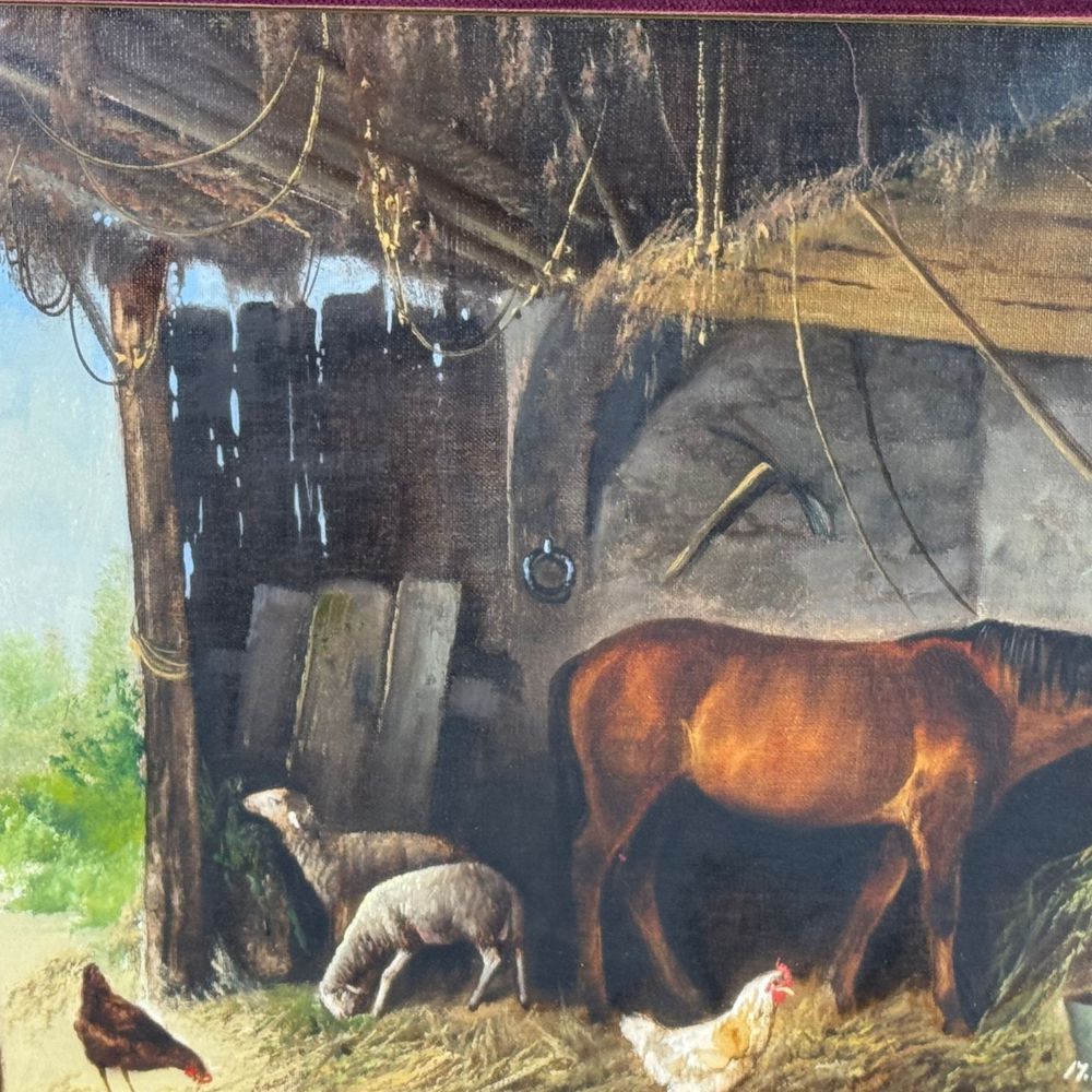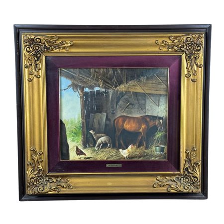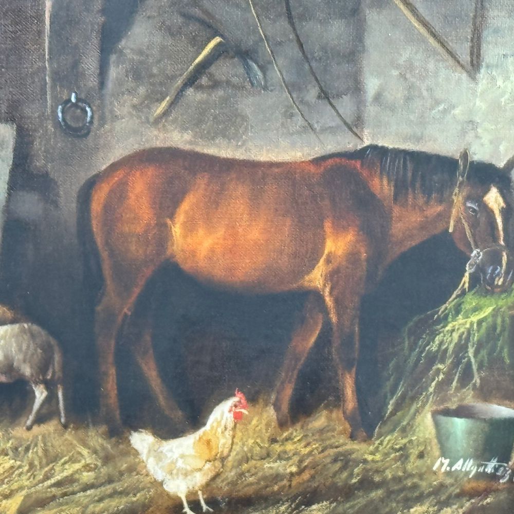 Dipinto olio su tela, periodo XX secolo, scuola Italiana, raffigurante Stalla con bestiame. Dimensioni interno cornice: 35x30 cm. Dimensioni compreso cornice: 62x57 cm. Reca firma in basso a destra da Mario Allegretti (Napoli 1945 - 2008). Opera in buone condizioni.