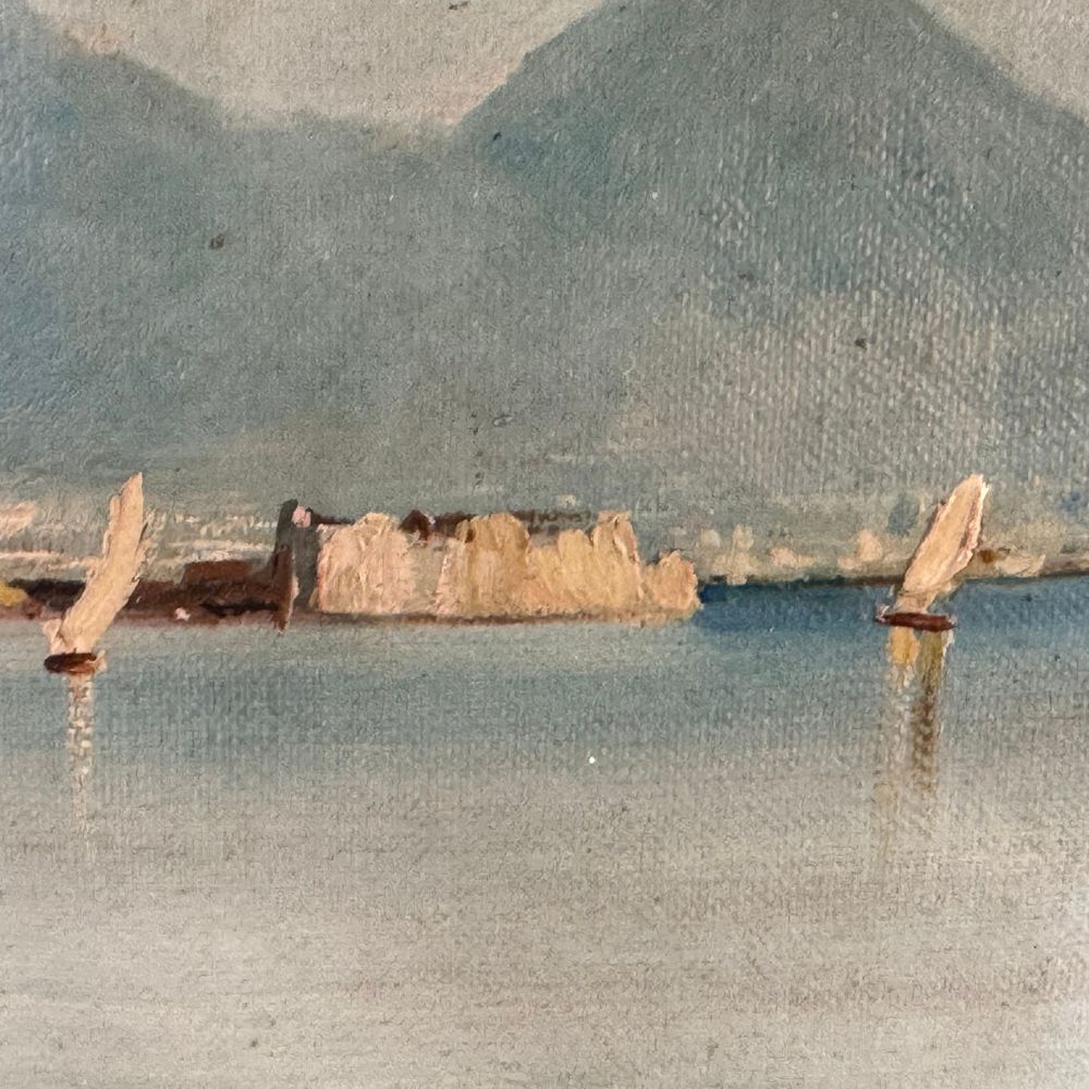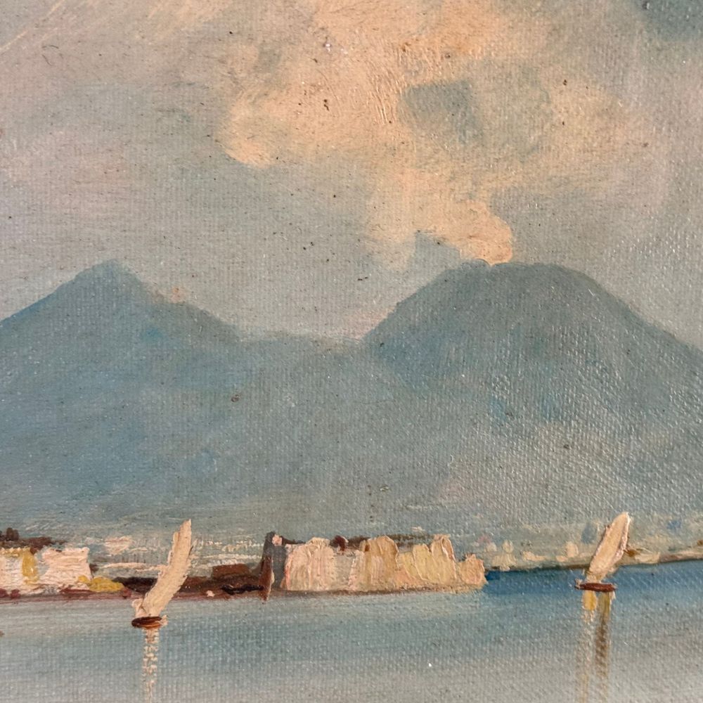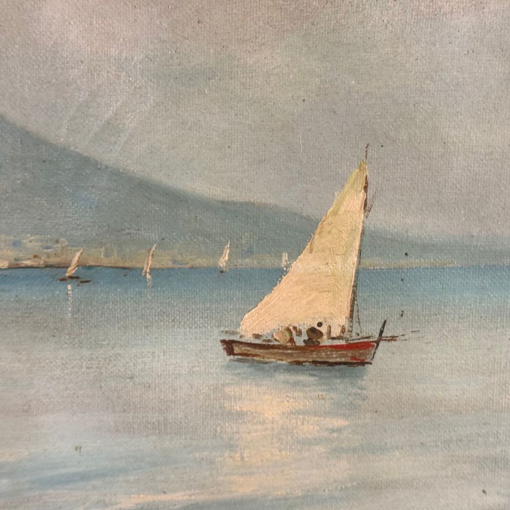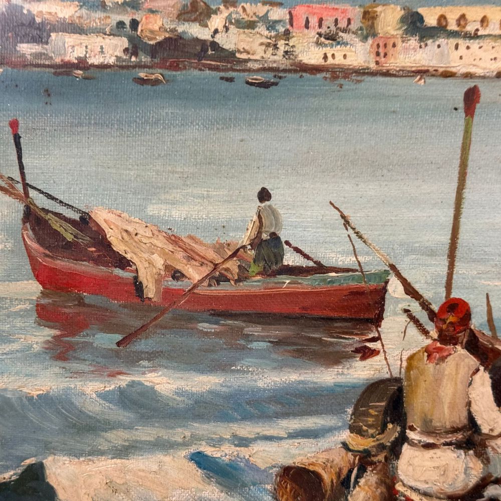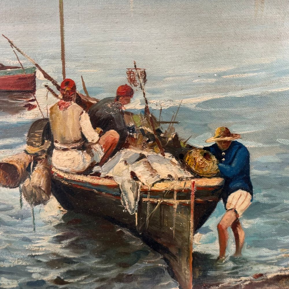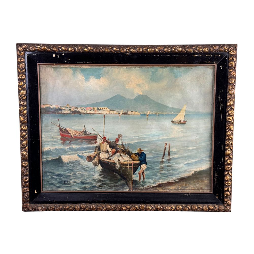 Dipinto olio su tela, periodo XX secolo scuola Italiana, raffigurante Golfo di Napoli con pescatori. Dimensioni interno cornice: 54x40 cm. Dimensioni compreso cornice: 67x53 cm. Reca firma in basso a sinistra da Fausto Pratella (1888). Opera in buone condizioni con lievi segni di vissuto come da foto allegate.