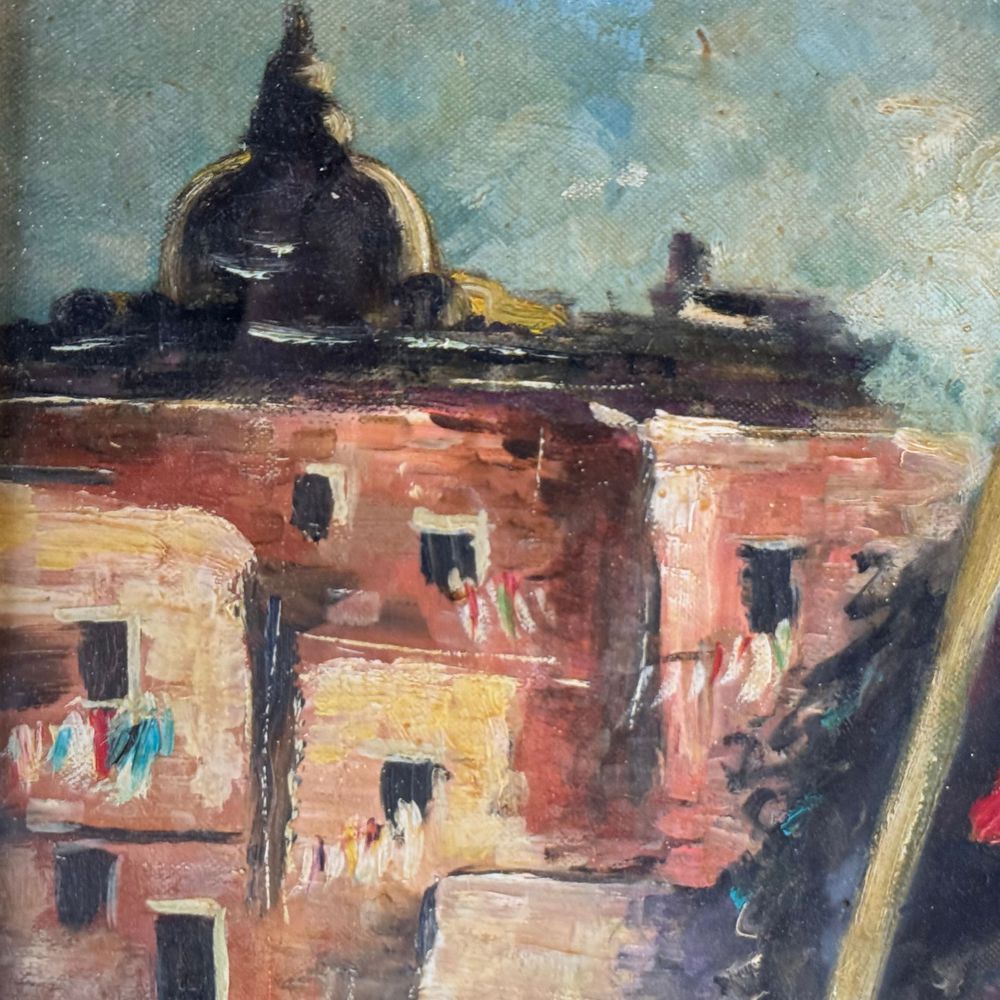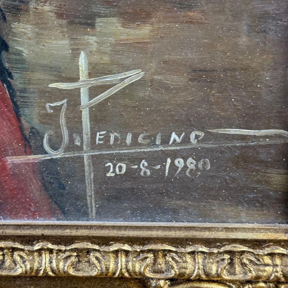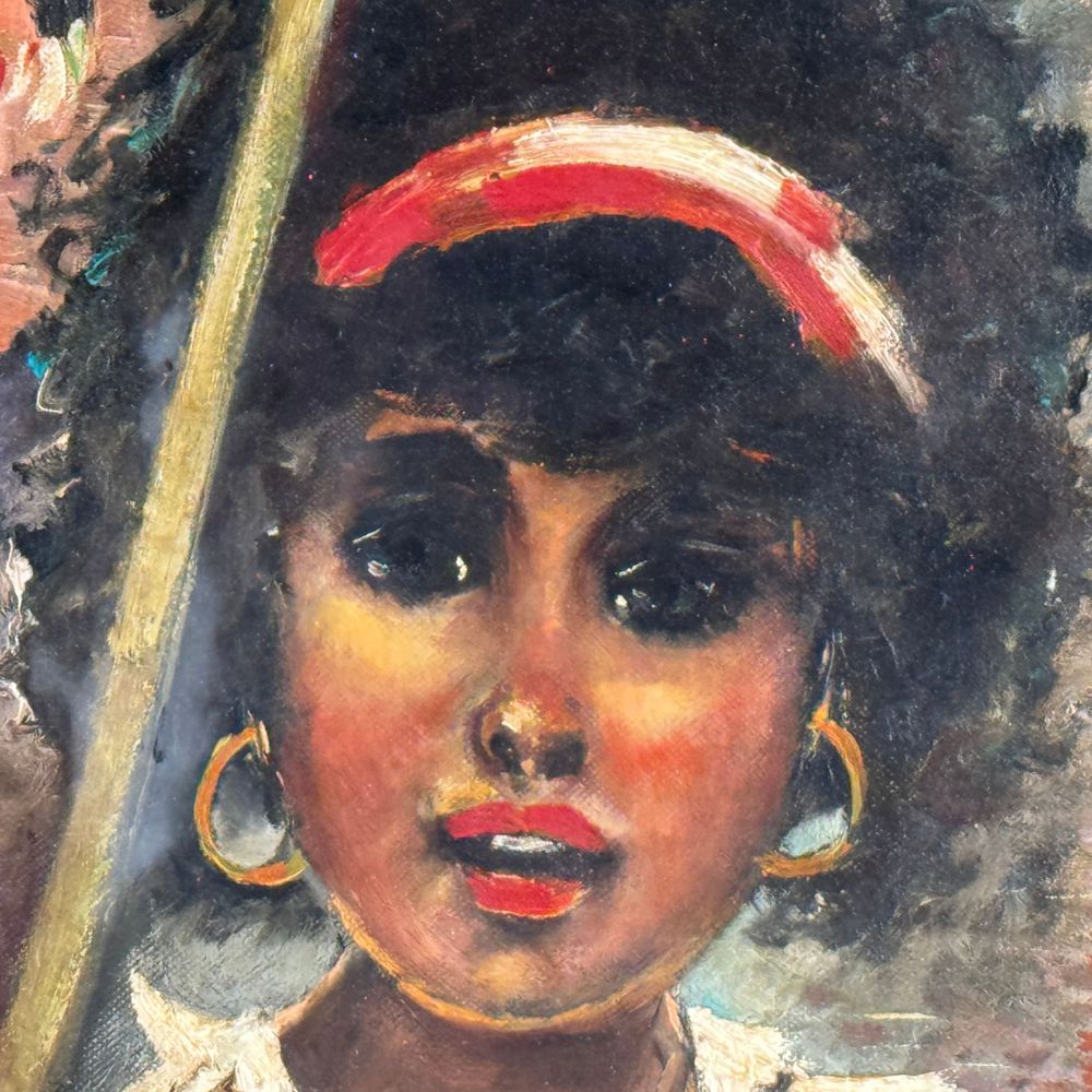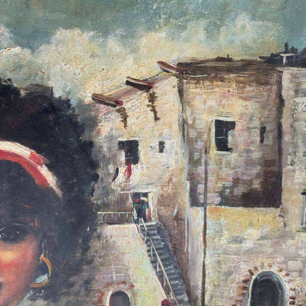 Dipinto olio su tavola, periodo XX secolo scuola Italiana, raffigurante Giovane venditrice. Dimensioni interno cornice: 50x70 cm. Dimensioni compreso cornice: 90x70 cm. Reca firma in basso a destra da artista non identificato. Opera in buone condizioni.