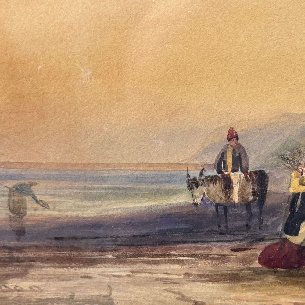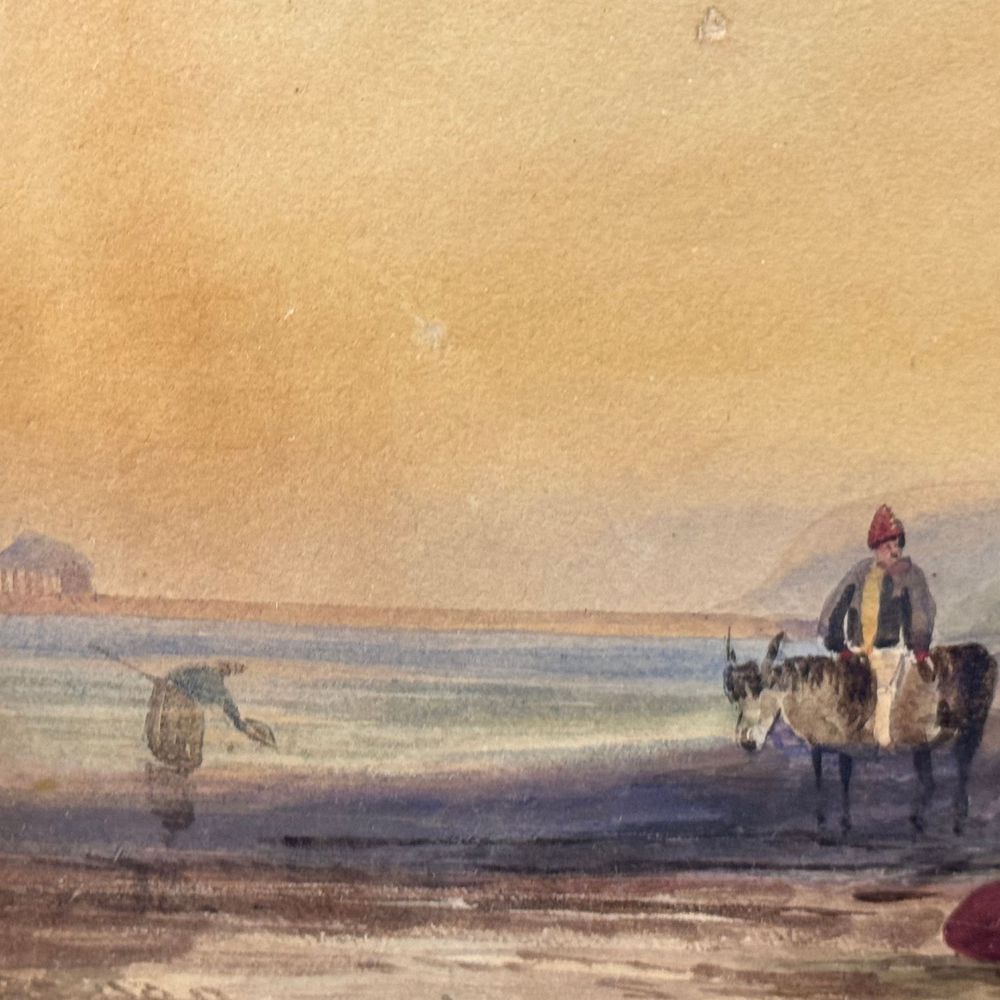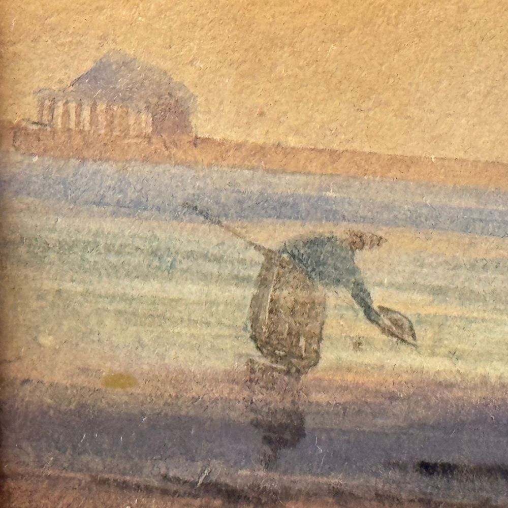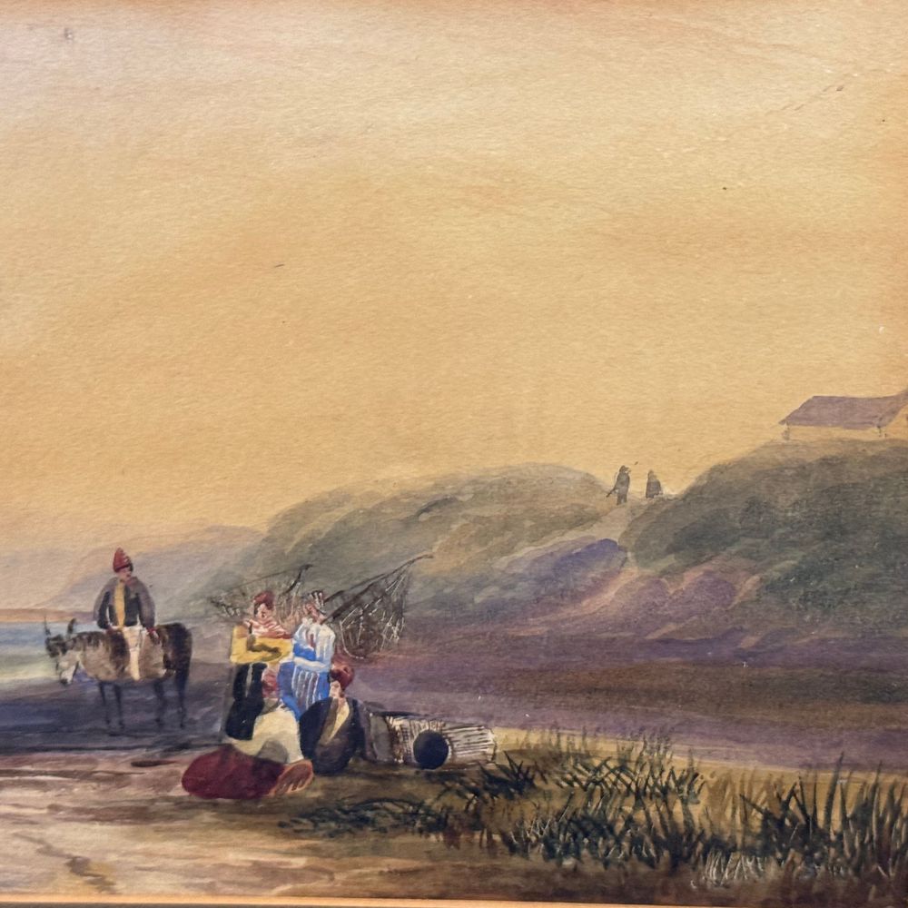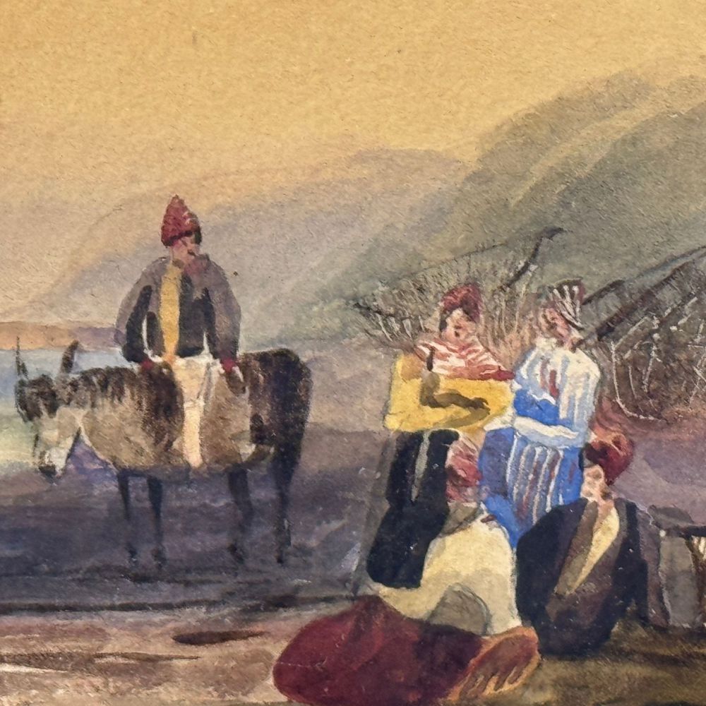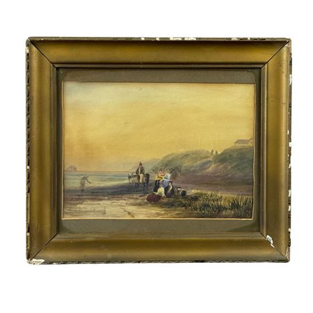 Dipinto acquerello su carta, periodo XIX secolo scuola Italiana, raffigurante Paesaggio con personaggi. Dimensioni interno cornice: 25x18 cm. Dimensioni compreso cornice: 33x28 cm. Da artista anonimo. Opera in buone condizioni.