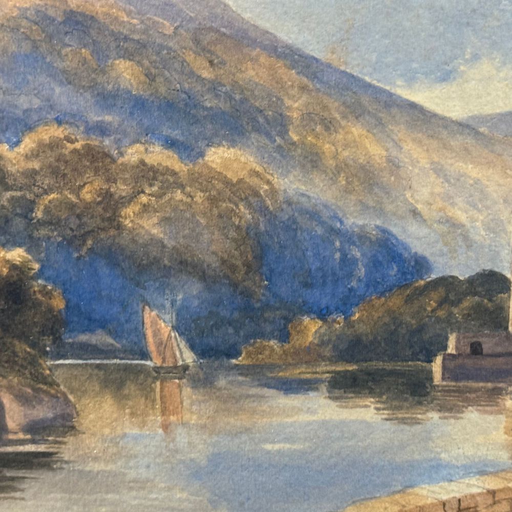 Dipinto acquerello su carta, periodo XIX secolo scuola Italiana, raffigurante Paesaggio con lago. Dimensioni interno cornice: 35x25 cm. Dimensioni compreso cornice: 49x39 cm. Da artista anonimo. Opera in buone condizioni.