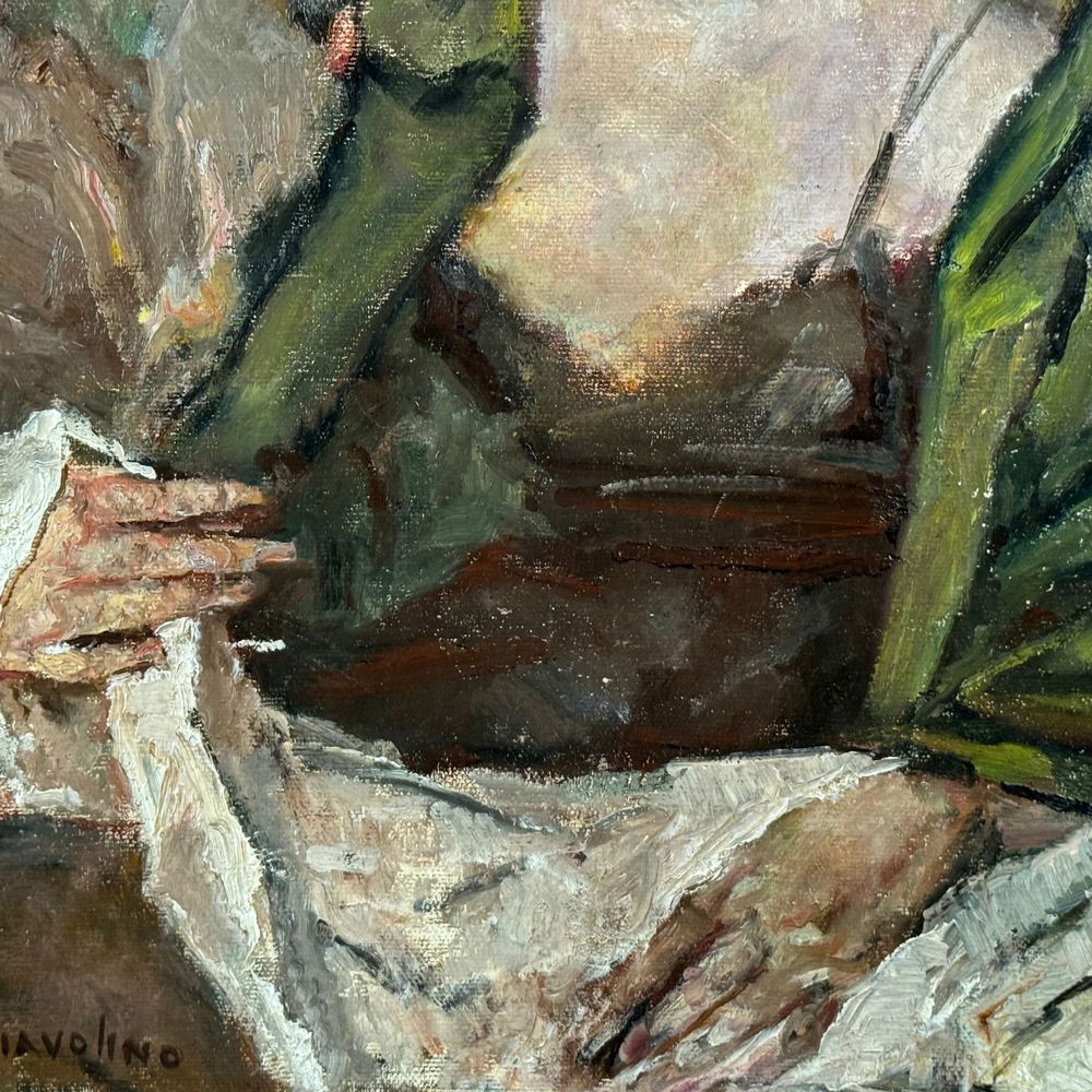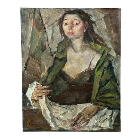 Dipinto olio su cartoncino telato, periodo XX secolo scuola Italiana, raffigurante Ritratto di donna. Dimensioni: 40x50 cm. Reca firma in basso a sinistra da Giuseppe Ciavolino. Opera in buone condizioni.
