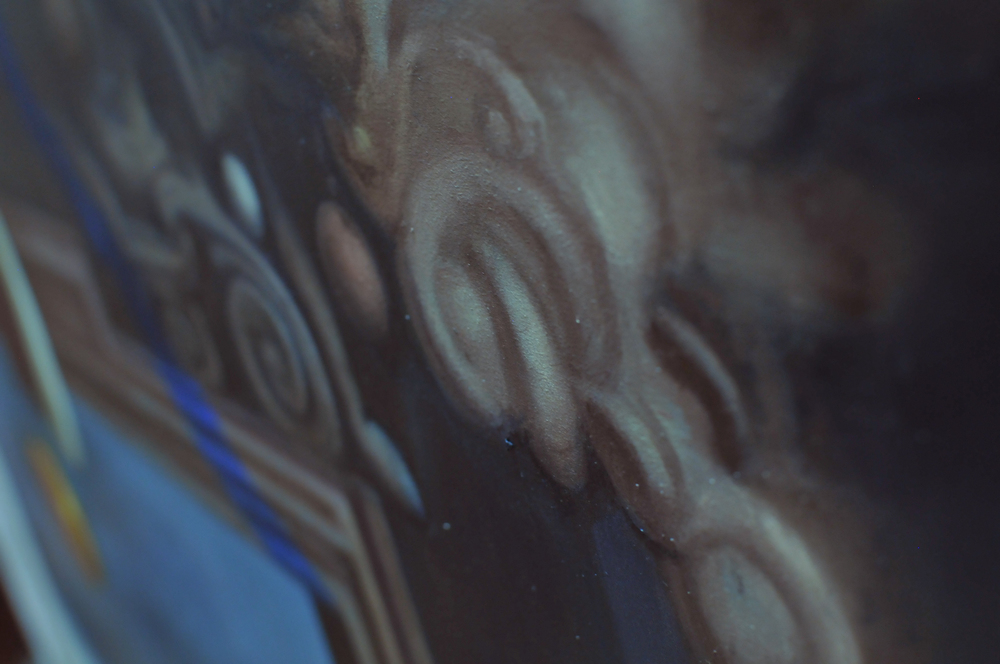 insondabile..non è figlio delle sostanze chimiche catalogate ed estrapolate dalla moderna scienza. Il quadro invita a scoprire le logiche dei mondi invisibili.Che non sono altrove, giacché tutto è qui e ora. Tale è l'occupazione dei mistici.