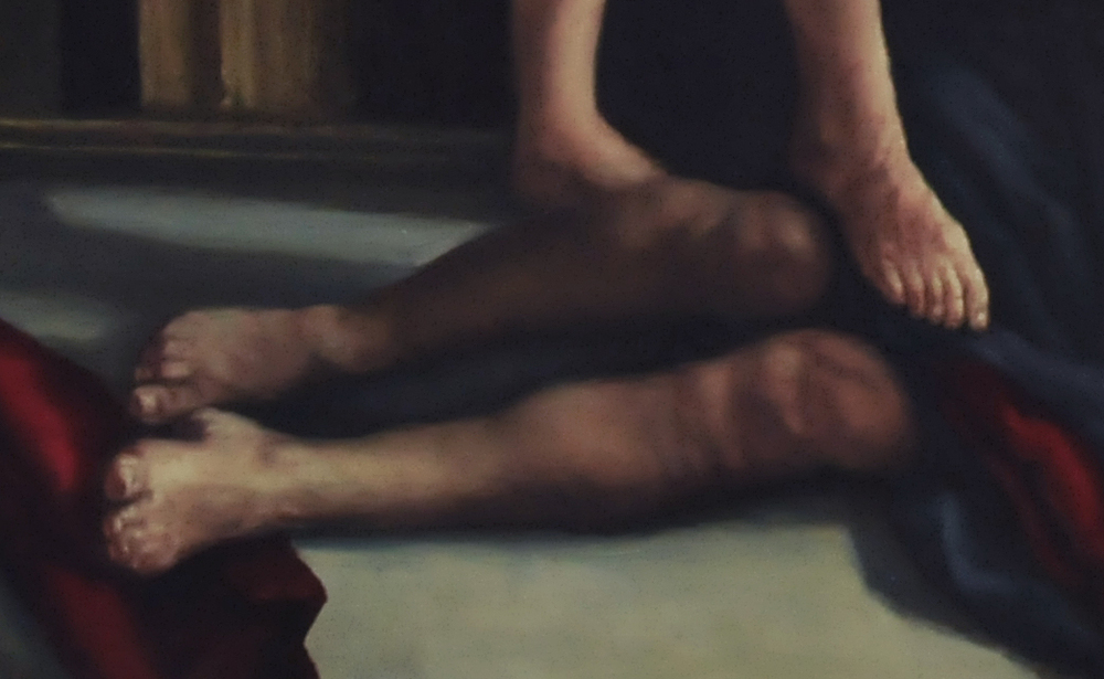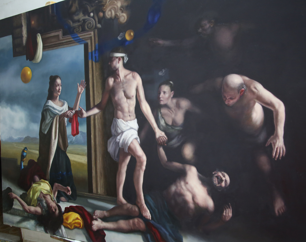 - i punti chiave della scena sono le geometrie sullo sfondo e l'uccello. Le geometrie evidenziano ingranaggi incomprensibili dei mondi invisibili.La dove si decidono le scene sul piano materiale.Così come qualsiasi creazione umana nasce dall'invisibile nella sua mente e solo dopo diviene materiale.