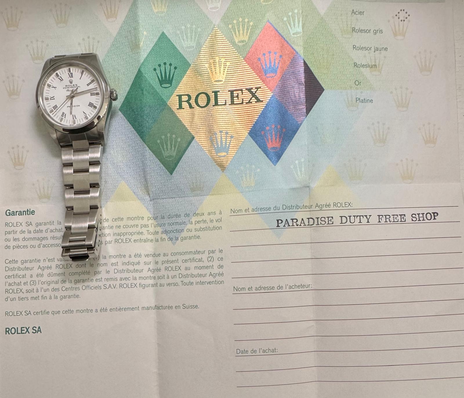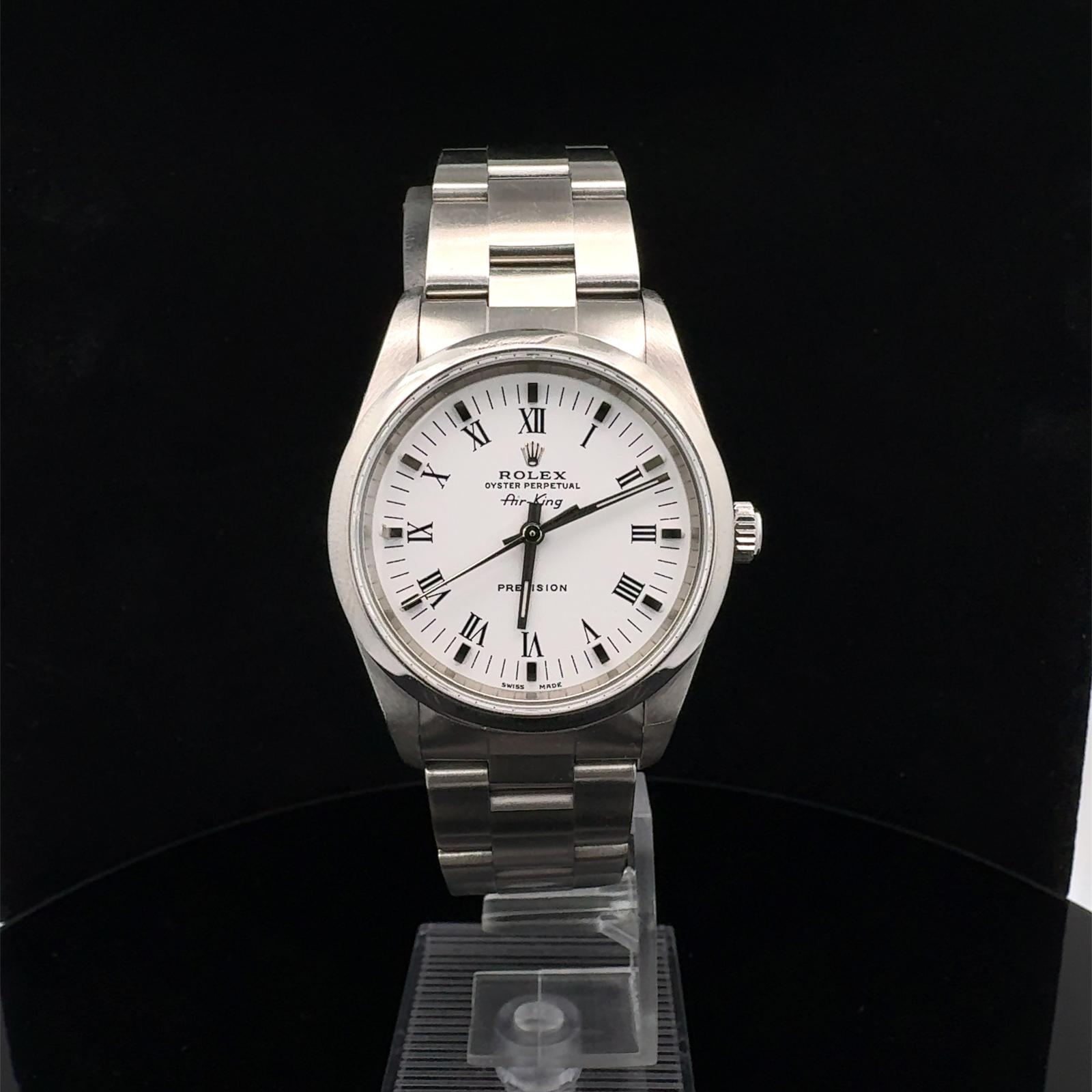 Marca Rolex Modello (Orologio) Air King Numero di referenza 14000M Carica Automatico Materiale della cassa Acciaio Materiale cinturino Acciaio Anni 2000 Condizione Ottimo (di seconda mano, segni di usura assenti o appena visibili) documenti originali, no box Carica Automatico Cassa Materiale della cassa Acciaio Diametro 34 mm Impermeabile 10 ATM Materiale lunetta Acciaio Vetro Vetro zaffiro Cinturino Materiale cinturino Acciaio Colore cinturino Acciaio Chiusura Déployante Materiale chiusura Acciaio