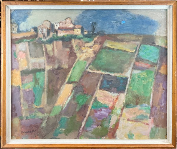 Enzo Morelli "Paese" 1962 olio su tela cm 50x60 firmato in basso a sinistra; tit