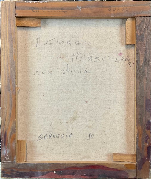 Aldo Saruggia "Senza titolo" 1980 olio su tela cm 35x30 dedicato, firmato e data