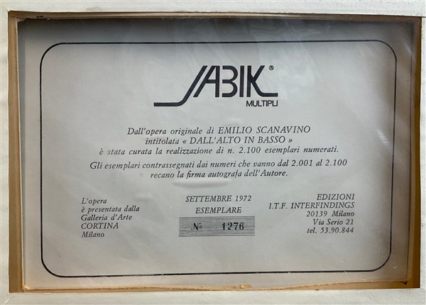 firma stampata in basso a destra. Edizione Jabik Multipli, es. 1276. In cornice