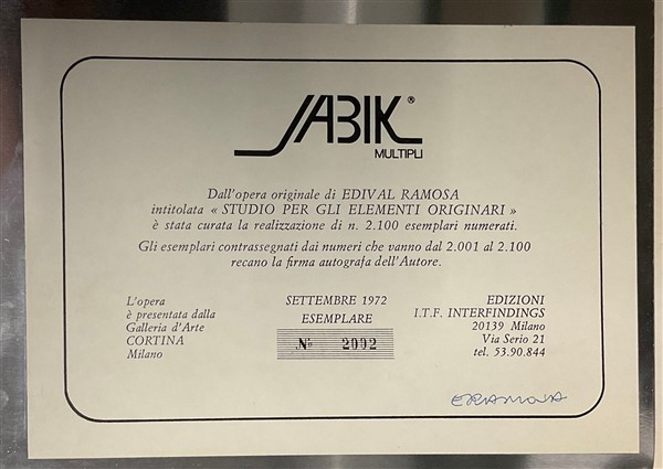 Edival Ramosa "Studio per gli elementi originari" 1972 serigrafia su alluminio c