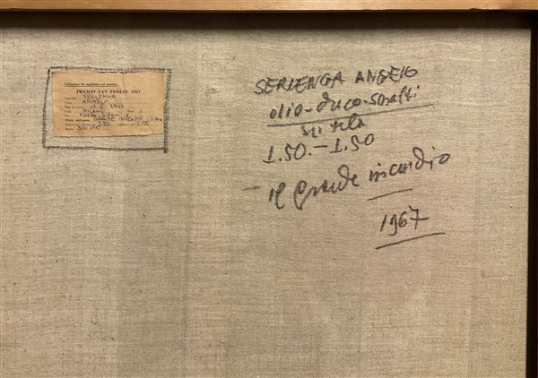 Angelo Serlenga "Grande incendio I/II Fase" 1967 olio e smalti su tela cm 150x15