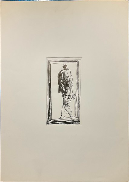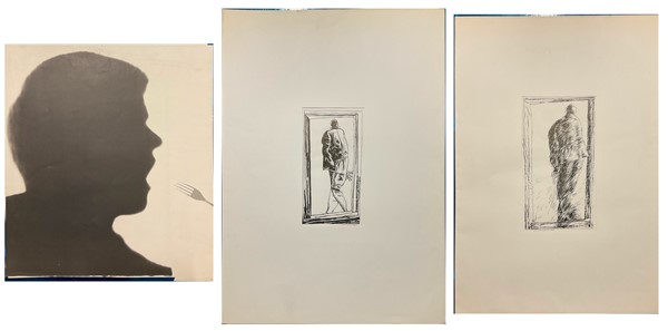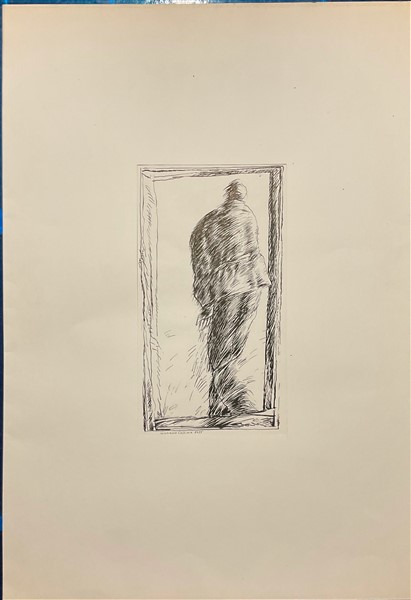 Lotto composto da due chine su carta raffiguranti figure di schiena e una stampa offset di misure diverse