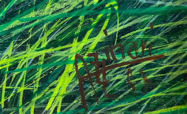 firmato in basso a destra; autenticato dall'artista al retro. In cornice (lievi difetti)