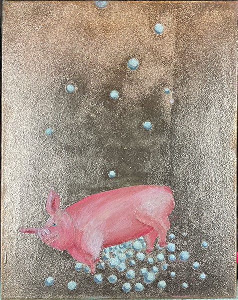 Florencia Martinez "L'ora della pappa" e "Perle ai porci" 1997 due tecniche mist