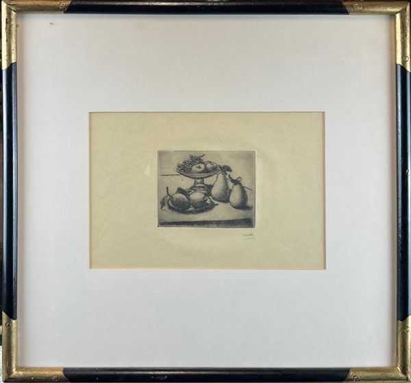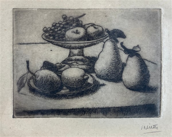 Alberto Salietti "Natura morta" 1925 puntasecca (lastra cm 9,2x11,7; foglio cm 3