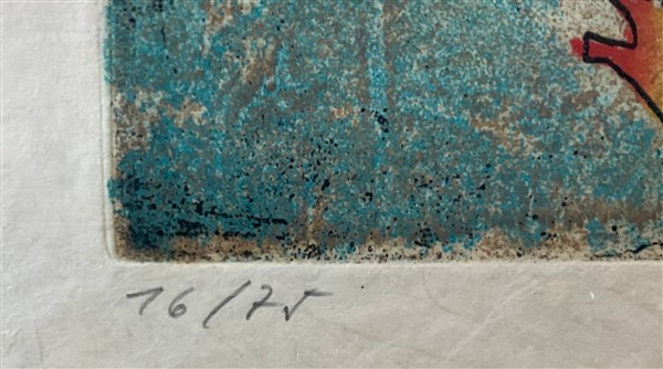 firmata e numerata 16/75 in basso a matita, dalla serie Los 5 Destagados. In cornice (lievi difetti)