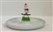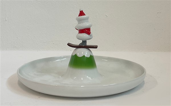 Piatto in porcellana con pupazzo di neve sugli sci. Produzione Alessi, Italia, 2009. (h max cm 14)