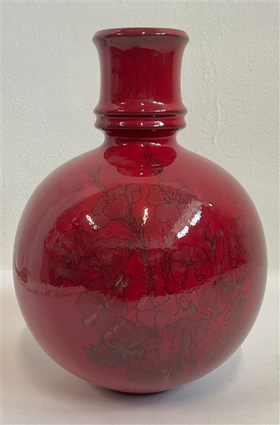 Ernestine Vaso globulare in ceramica smaltata in rosso e decorata con fiori al t