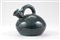 Versatoio in ceramica smaltata in celeste e grigio nero. Francia, seconda metà secolo XX. Firmato sotto la base. (h cm 18)