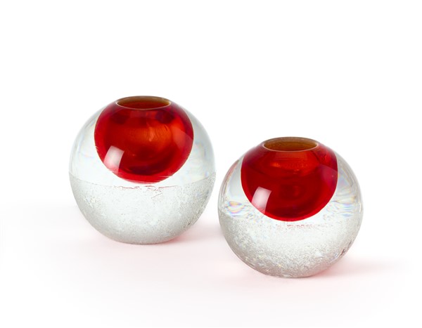 Seguso Vetri d'Arte (Attribuito) Coppia di vasi sferici in vetro soffiato rosso