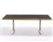 Scrivania con piano rivestito in pelle nera e bordato in legno di rovere massello, sostegni in metallo cromato. Produzione Knoll International, USA, 1973. (cm 227x76x110) (lievi difetti)