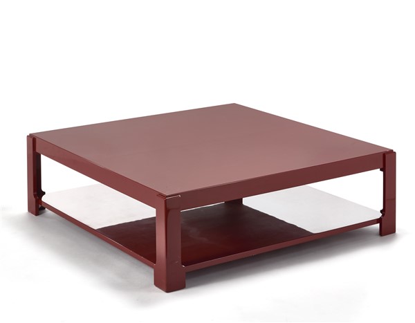 Tavolo da salotto in legno laccato rosso (cm 132x41x132). Italia, anni '90/2000