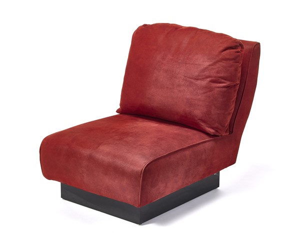 Willy Rizzo (Attribuito) Poltrona imbottita rivestita in pelle scamosciata rossa