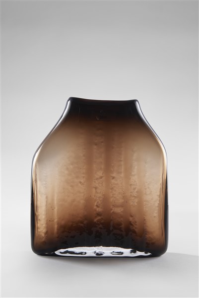 Vaso a sezione rettangolare e collo rastremato. Produzione Whitefriars, Gran Bretagna, anni '60/'70. Vetro soffiato trasparente marrone. (h cm 23)