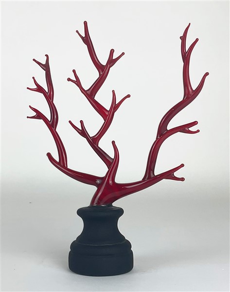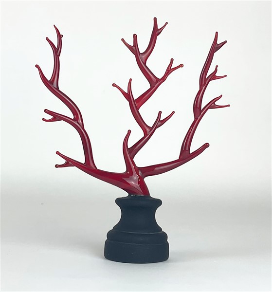 Manifattura di Murano "Corallo" Piccola scultura in pasta vitrea rossa su piedis