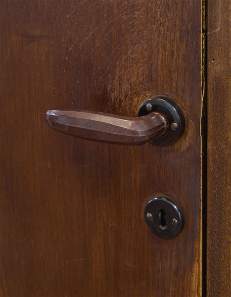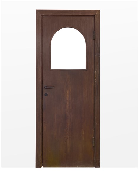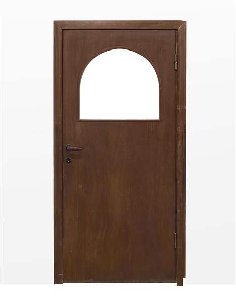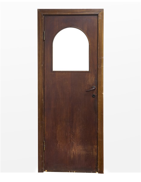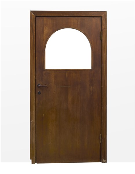 Lotto di otto porte in legno scuro dotate di lunetta in vetro. Maniglie in bachelite marrone scuro. Milano, 1932. (misure diverse: cm min 81,5x202,5; cm max 102x201,5) (difetti)