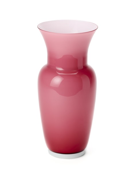 Vaso in vetro soffiato incamiciato ametista della serie "Opalini". Murano, 1990. Firmato a punta "venini 90". (h cm 36)