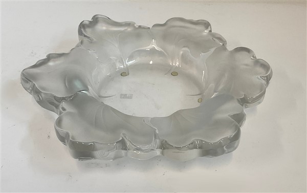 Lalique Centrotavola in vetro trasparente pressato in forma con foglie. Francia,