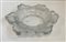 Centrotavola in vetro trasparente pressato in forma con foglie. Francia, seconda metà secolo XX. Firmato a punta sotto la base. (h max cm 6; d cm 30)