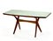 Tavolo con struttura a cavalletto in legno massello sagomato. Piano bordato e rivestito in laminato verde. Italia, anni '50. (cm 171x76x76,5) (lievi difetti)
