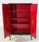 Mobile contenitore a due ante in legno ebanizzato e laccato rosso con decori ve