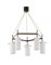 Lampadario in ottone e metallo verniciato nero, cinque diffusori cilindrici in vetro opalino. Italia, anni '60. (h cm 70; d cm 52) (lievi difetti)