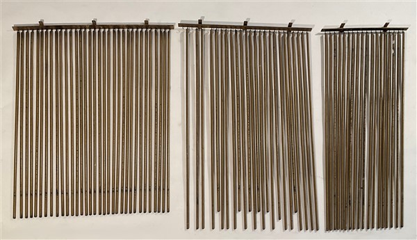 Tre strutture copricalorifero con elementi tubolari in ottone. (h max cm 106) (lievi difetti e mancanze)