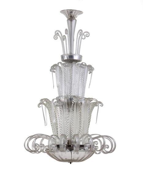 Lot 2121 | Barovier e Toso (Attribuito) Lampadario con bracci a pennacchi e foglie. Murano,