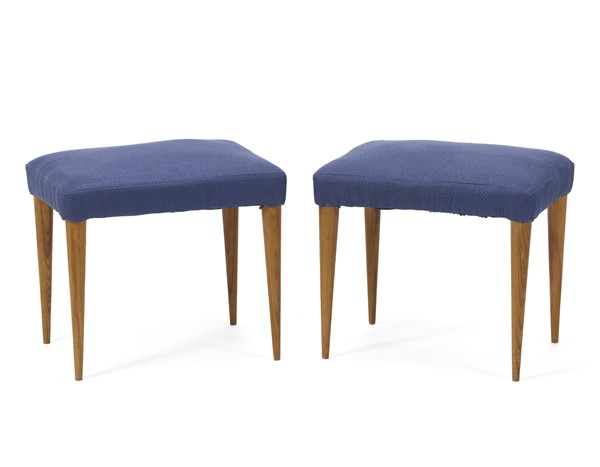 Lot 2131 | Coppia di panchette. Italia, secolo XX. Struttura in legno e seduta imbottita e