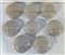 Gruppo di otto applique modello "Mania". Produzione Artemide, 1963. Paralume in materiale plastico opalino e struttura in metallo laccato bianco. (d cm 23) (difetti)
