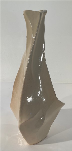Vaso di forma irregolare in grès smaltato in beige sottovetrina. Italia, anni '