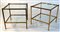 Coppia di tavolini in ottone lucidato con piani in cristallo molato. Italia, an