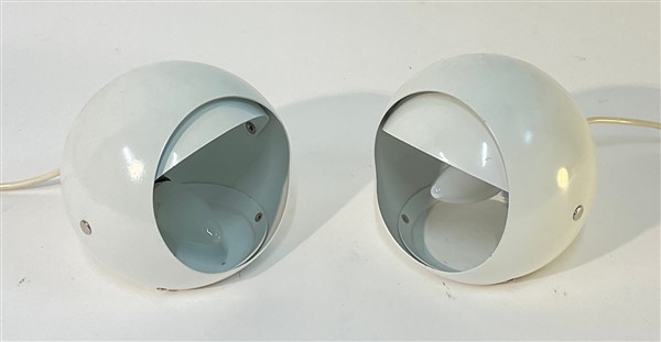 Coppia di lampade da tavolo in metallo laccato bianco. Milano, anni '70. (d cm 15) (difetti)
